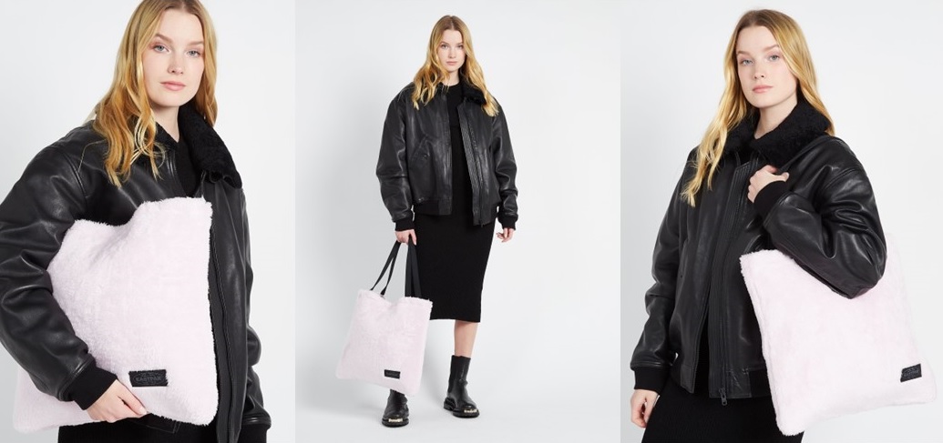 Our sleek and spacious shoulder bag features in a soft-touch fuzzy fabric. Stash your everyday essentials in the main compartment of this fluffy tote bag and carry it with the shoulder straps.