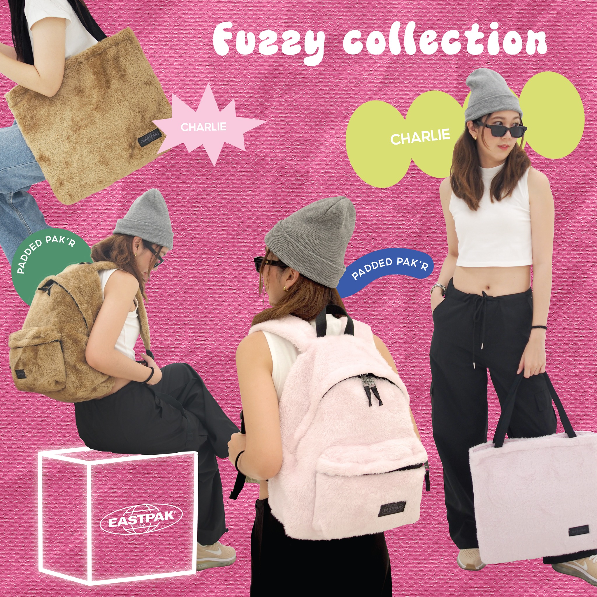 EASTPAK Charlie Fuzzy Women’s Shoulder Bag | Tote Bag กระเป๋าถือ พาดไหล่