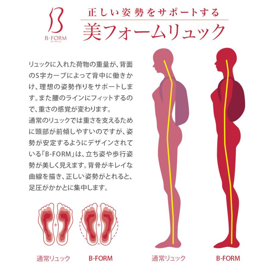 With the design that fits perfectly to the curve of the back and the shoulder pads that help opening your chest and shoulders, B-Form backpacks help distributing the weight perfectly to prevent back and shoulder ache, and achieving the beauty from the straight body posture.
