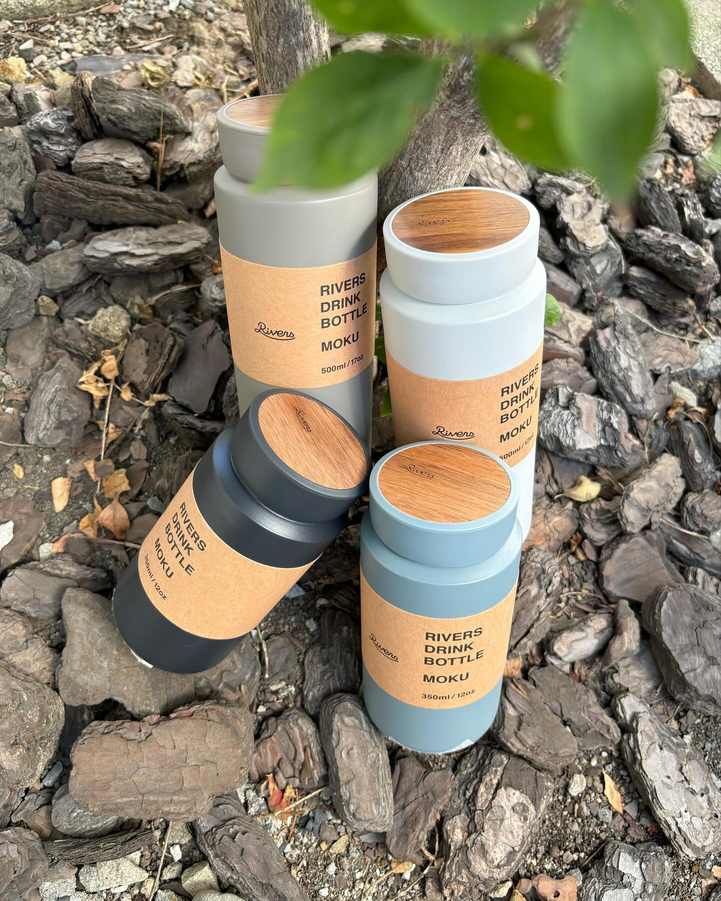 Rivers DRINK BOTTLE MOKU 350 Vacuum Stainless Steel Bottle with Natural Wood Motif ขวดเก็บอุณหภูมิ