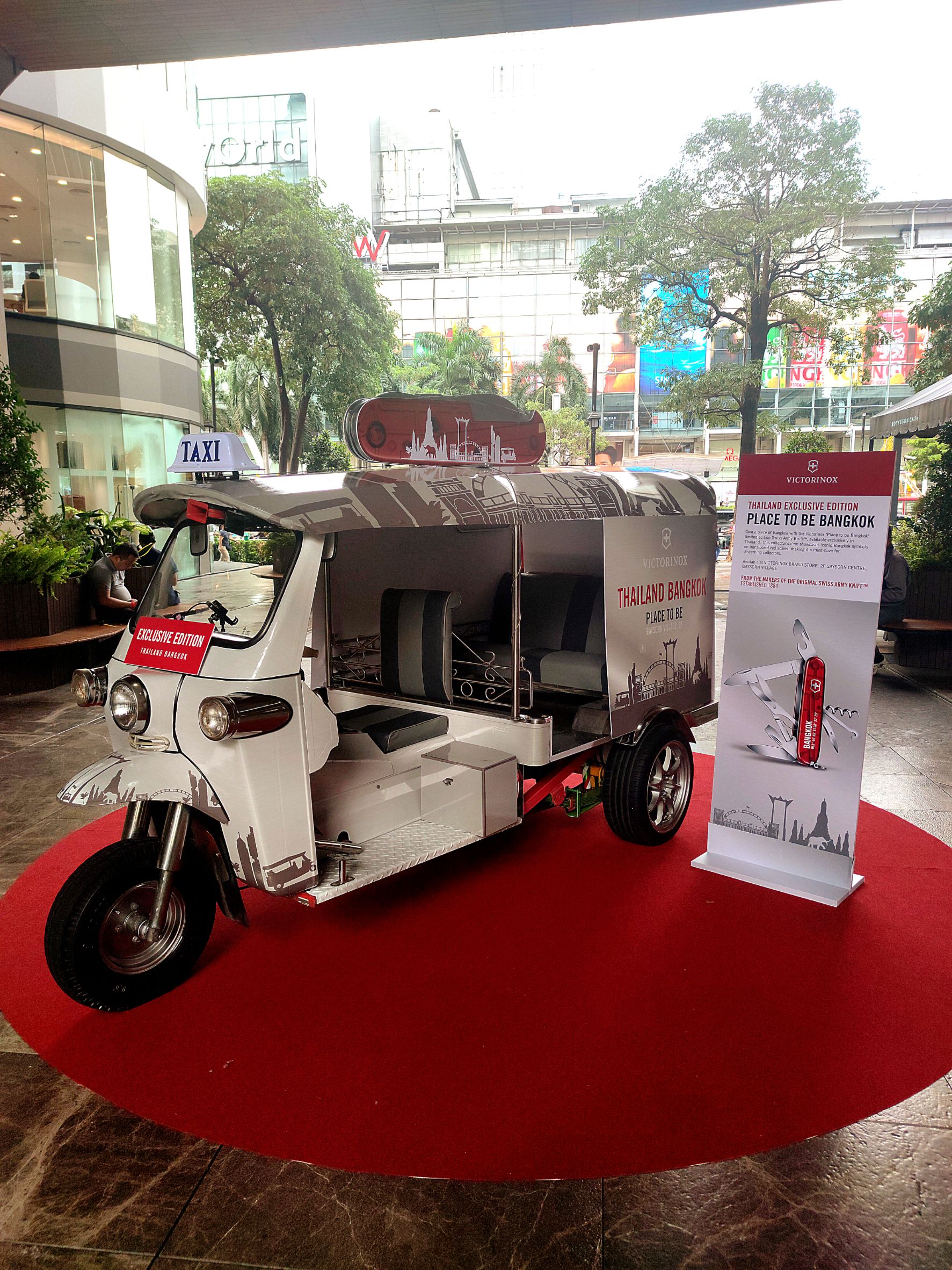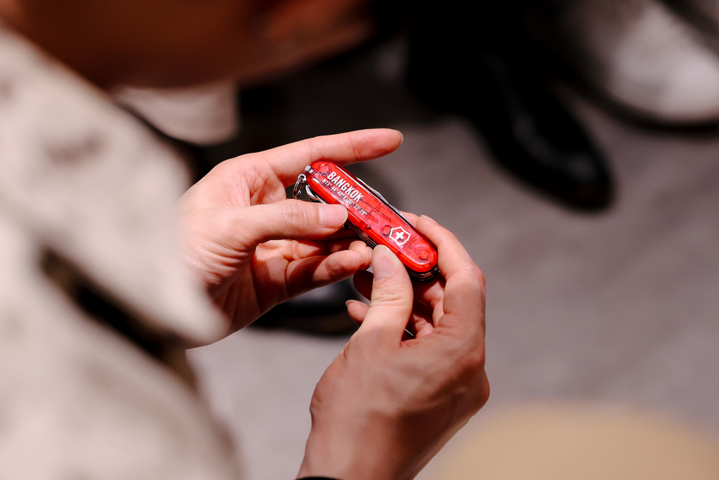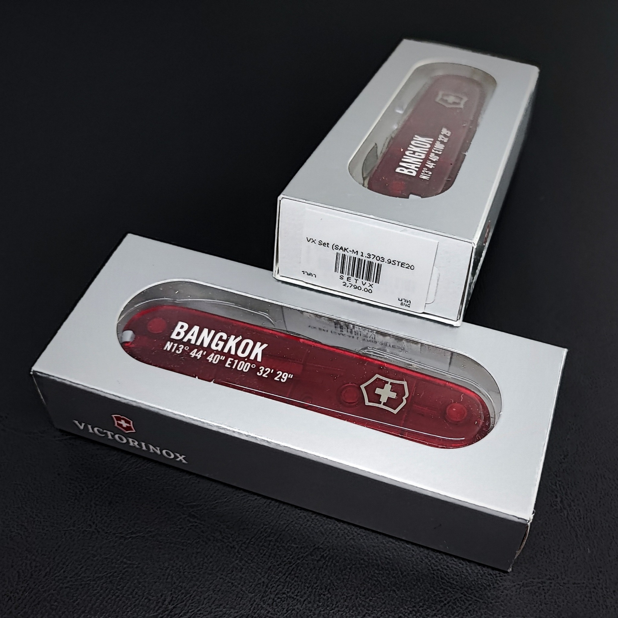 Own a piece of Bangkok with the Victorinox WPlace to be BangkokW limited edition Swiss Army Knife™, available exclusively in Thailand. This collector's item showcases iconic Bangkok symbols on translucent red scales, making it a must-have for discerning collectors.