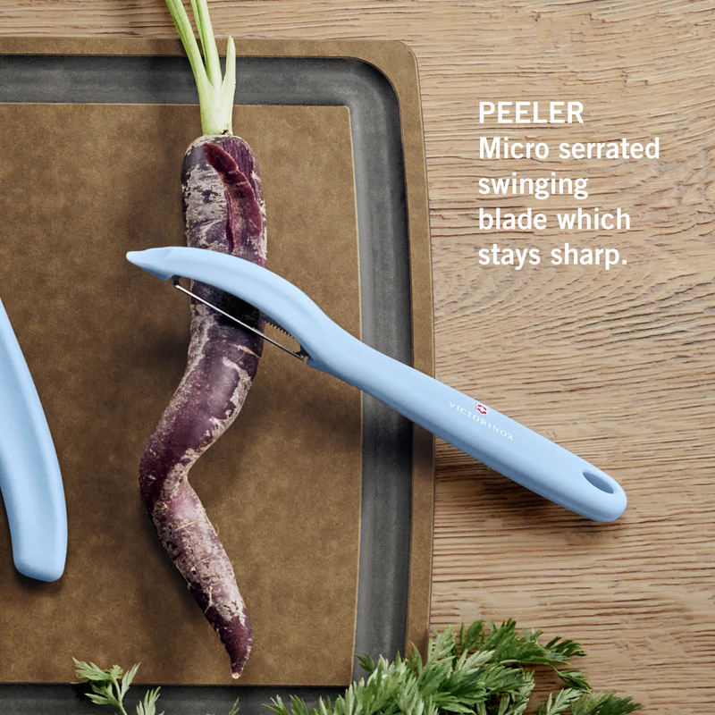 Cooking is an art where you draw with taste and dress with colors. As the master of your kitchen, you deserve the right tools to express your creativity. This is when the Victorinox Universal Peeler comes in handy. Its serrated edge is ready to face the firmest peels while its ergonomic handle makes cooking as fun as it is easy.